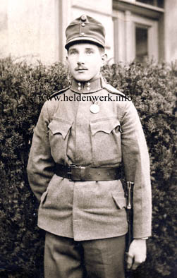 Karl Johann Alfanz wurde am 23. Jänner 1895 als ehelicher Sohn des Fabriksarbeiters Karl Alfanz und seiner Frau Maria Anna, geborene Minažik, in Payerbach, Stadtteil Schmidsdorf, geboren. Als Nicht-Gedienter wurde er 1915 zum Landsturm eingezogen und dem Feldjäger Baon Nr. 21 zugewiesen. Ldst-Jäger Karl Alfanz wurde insgesamt dreimal verwundet, ein Durchschuss des rechten Unterschenkels, ein Lungendurchschuss und ein Durchschuss des linken Oberschenkels, und erwarb sich im Zuge eines Sturmangriffes während der 10. Isonzoschlacht die Goldene Tapferkeitsmedaille. Als er im Laufe des Jahres 1936 von der Leitung des Rings der Goldenen Tapferkeitsmedaille aufgefordert wurde eine Beschreibung der Tat, die zur Verleihung der Goldenen Tapferkeitsmedaille geführt hat, abzugeben, übersandte er eine Abschrift der Eingabe seiner Einheit: „Der Ldst-Jäger Karl Alfanz wurde anlässlich des Sturmangriffes am 5. Juni 1917 während der 10. Isonzoschlacht vor Mediaza und Jamiano unter Kommando des Herrn Leutnant Schaufler mit noch 12 Kameraden als linke Flankendeckung ausgesandt. Nach einstündigen Vorgehens kam er bald aus dem Gesichtskreis seiner Kameraden welche zum Teil verwundet oder gefallen waren. In treuer Erfüllung seiner Soldatenpflicht stürmte er ein italienisches Maschinengewehr, welches ununterbrochen unsere Reserven beschoss. Er arbeitete sich, das fürchterliche Gewehr- und Artilleriefeuer nicht achtend, ziemlich nahe an das Maschinengewehr heran und bewarf es mit gut gezielten Handgranaten, so dass er bald die feindliche Abteilung, einige Offiziere und 6 Mann, als Gefangene in unsere Stellung zurück jagen konnte. Bald darauf wurde er von einer feindlichen Kugel getroffen, welche ihm den rechten Unterschenkel durchschoss, so dass er weder vor- noch rückwärts konnte. So blieb er von 7h früh bis ½ 10h abends unter den heftigsten Schmerzen in dem fürchterlichen Artilleriefeuer beim erbeuteten Maschinengewehr. Erst um 10h abends, als das Feuer etwas nachlies, konnte er sich nach dem das Maschinengewehr in Sicherheit war auf dem Hilfsplatz begeben. Alfanz war 3 mal im Felde, 3 mal verwundet davon 1 mal schwer.“ Karl Alfanz wurde für diese tapfere Tat mit Baonsbefehl 124/1917 vom 28. Juni 1917 mit der Goldenen Tapferkeitsmedaille ausgezeichnet. Die amtliche Publikation im Verordnungsblatt erfolgt am 30.1.1918. Aufgrund seiner Verwundung wurde er letztlich bis nach Wien ins Hospital transportiert wo ihm, durch die ihn betreuende Rekonvaliszentenabteilung des Inf. Rgt. Nr.4 am 23. Juli 1917 die Goldene Tapferkeitsmedaille ausgehändigt wurde. Karl Alfanz wurde noch zum Ldst-Unterjäger befördert und mit dem Karl-Truppen-Kreuz sowie der Verwundetenmedaille mit drei Bandstreifen ausgezeichnet, kam aber nicht mehr in den Fronteinsatz. Nach dem Krieg lies er sich in Niklasdorf bei Leoben nieder, heiratete und gründete eine Familie. Ab dem 6. Dezember 1918 erhielt er eine Stelle in einer Papierfabrik, wo er sich im Laufe der Jahre bis zum Werkmeister hoch arbeitete. Laut eigenen Angaben war er niemals arbeitslos, eher selten in den schwierigen Zeiten zwischen den Weltkriegen. Nachdem Österreich durch den Einmarsch der Deutschen Wehrmacht zu einem Teil Großdeutschlands geworden war, wurde er, im Gegensatz zu vielen anderen Trägern der Goldenen Tapferkeitsmedaille, nicht ehrenhalber zum Leutant a.D. befördert. Karl Johann Alfanz, der am 1. Mai 1939 aus der röm.kath. Kirche ausgetreten ist, verstarb am 12. Februar 1966 im Spital in Bruck an der Mur. © Jörg C. Steiner, Wien |