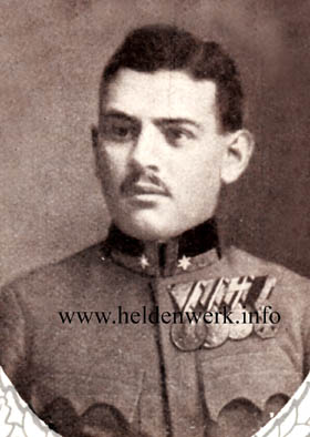Otto Bergmann wurde 1898 in Temesvár (Ungarn heute Rumänien) geboren. Er rückte am 29. Mai 1916 im Alter von 17½ Jahren zum k.u.k. Infanterie Regiment Nr. 62 ein. Nach Vollendung der Rekrutenzeit und der Schule für Reserveoffiziere, ging er am 6. Februar 1917 mit dem 27. Marschbaon ins Feld. Er tat in der 13. Kompanie Dienst und bestand seine Feuerprobe in der 10. Isonzoschlacht, wo er für sein tapferes Verhalten vor dem Feind mit der Silbernen Tapferkeitsmedaille 2. Klasse ausgezeichnet wurde. Am 29. Juni 1917 meldete er sich freiwillig für den Sturmkurs und machte, nachdem er diese Ausbildung erfolgreich durchlaufen hatte, als Führer einer Sturmpatrouille die 11. Isonzoschlacht mit. Für sein tapferes und umsichtiges Verhalten wurde er am 22. August 1917 erneut mit der Silbernen Tapferkeitsmedaille 2. Klasse geehrt. Er durfte also fortan eine Wiederholungsspange auf dem Band dieser Auszeichnung tragen. Zusätzlich wurde er außertourlich zum Fähnrich der Reserve befördert. Weiterhin als Sturmoffizier verwendet, errang er kurz darauf die Silberne Tapferkeitsmedaille 1. Klasse. Am 26. Oktober 1917 meldete sich Fähnrich d.Res. Baumann zum Angriff auf dem Fajti Hrib. Bei diesem tollkühnen Unternehmen fand der junge Offiziersanwärter den Heldentod und wurde posthum mit der Goldenen Tapferkeitsmedaille geehrt. Im 3. Band des Heldenwerkes wird der Brief seines Kompaniekommandanten Hauptmann Anton Pfann als Schilderung seiner Waffentat publiziert: „Ihr Sohn hatte sich, wie stets, auch bei diesem Angriffe freiwillig zu einer Sturmpatrouille gemeldet. Zwei Tage vor seinem Tod sprach ich noch mit ihm; Zuversicht und unwiderstehlicher Tatendrang dokumentierten sein Wesen. Weit voraus eilte er seiner Patrouille, drang als einer der Ersten in die feindliche Stellung, stürzte sich auf mehrere feindliche Offiziere; da durchbohrte die Kugel eines Hauptmannes seinen Hals und schmerzlos sank er dahin. Und über den vielen Leichnamen tobte die Schlacht weiter. Die meisten Leute der Patrouille blieben tod oder verwundet – so daß ich Genaueres nicht erfahren konnte. Der Leichnam soll in eine Kaverne gebracht worden sein, doch dürfte diese, da die Artillerieschlacht mit größter Heftigkeit tobte, vollkommen verschüttet worden sein.“ Nachdem der Brief an die Eltern abgeschickt worden war, traf jedoch beim Ersatzbataillon ein Telegramm folgenden Inhalts ein: „Leichnam Fähnrich Bergmann geborgen und an der Bahn St. Daniel beerdigt.“ Dies dürfte am 31. Oktober 1917 gewesen sein, denn auch in der amtlichen Verlustliste wird Otto Bergmann mit diesem Datum als gefallen geführt. © Jörg C. Steiner, Wien |
