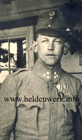 Georg Buchsteiner wurde am 26. Mai 1894 in Flachau (Salzburg) geboren und am 27. Mai auf "Georg Florian" römisch katholisch getauft. Sein Vater Georg Buchsteiner war Bauer und bewirtschaftete mit seiner Frau Anna das Jägerbauergut in Flachau Nr.3, Post Altenmarkt. Georg Buchsteiner wurde Arbeiter im örtlichen Sägewerk und wurde aus diesem Zivilberuf am 26. Oktober 1914 zum k.u.k. Inf. Rgt. "Erzherzog Rainer" Nr. 59 eingezogen. Am 16. Juli 1915 erhielt er bei den Kämpfen in Russisch Polen einen Oberschenkel-Durchschuss. Von der Vereinsleitung de Rings der Goldenen Tapferkeitsmedaille aufgefordert eine Tatbeschreibung abzugeben, schrieb er im August 1936 folgendes: "Von Weihnachten 1914 - 16. Juli 1915 wo ich bei Dombina Meierhof (Jozefhof) verwundet wurde war ich beim Inf. Rgt. 59, 9. Komp. nach Entlassung asu dem Spital zum Wachdient, Besatzungskompanie Franzensfeste kommandiert, am 1. Dezember 1915 ins Feld kommandiert zur Kompanie Hauptmann Vlasič, von dort zur 6. Kompanie, Landsturm Baon 165, nahc der Maioffensive 1916 zur 3. Komp. Ldst Baon 165, alles gemischt Polen, Ruthenen usw. zum Sugana Tal, hernach kamen wir nach Arabba, Dolomiten. Am Rücken oberhalb Arabba gegen den 'Pala Meriang' waren wir in Stellung, Schusslinie 800 x entfernt machte ich mit dem Kaiser Schützen Korporal (Unterjäger) Georg Nussbaumer in der Nacht vom 20.-21. Feber 1917 einen Patroullengang auf die Waldkuppe Crapp di Pestort. Wir erstiegen mit Schneeschuhen die hohe Kuppe lagen 3 Stunden in der Kälte auf Lauer warteten den Postenwechsel ab, beschossen diesen und stürmten mit 'Hurra' den teilweise abgedeckten Graben, das Drahthinderniss war leicht überwunden (das vom Sommer war tief unter Schnee) Spanische Reiter waren auf dieses gestellt. Nussbaumer schleuderte Handgranaten in den Unterstand machte dabei ein paar unschädlich, die anderen wurden zurückgedrängt, die Kuppe war nach Aussage eines Gefangenen mit ca. 50 Mann besetzt. Mit verschiedenen Rüstungsgegenständen und Mitnahme eines Gefangenen traten wir den schwierigen Rückzug an, die Hauptstellung überschüttete uns mit Inf. Feuer, von der Flanke M.G. Feuer, dank dem raschen Einsetzen der 9 cm Batterie Arabba wurde die weitere feindliche Einwirkung verhindert. Wir beide kehrten mit dem verwundeten Gefangenen, den wir noch verbanden, in die eigene Stellung zurück. Dafür erhielt ich vom Generalmajor des Rayons Kommandos V. die Goldene Tapferkeitsmedaille. Georg Nussbauer bekam auch die Goldene!" Beiden wurde für diese Tat die Goldene Tapferkeitsmedaille zuerkannt. Die Übergabe erfolgte am 20. März 1917, beide wurden zu Zugsführern befördert und mit einer Prämie von 100 Kronen geehrt. Am 23. April 1917 konnten sich beide Zugsführer abermals bei einer schneidig durchgeführten Patrouille auszeichnen. Am 1. Juni 1917 wurden die beiden abermals gemeinsam geehrt, Georg Nussbauer erhielt die Silberne Tapferkeitsmedaille 1. Klasse zum zweiten Mal und Georg Buchsteiner die Silberne Tapferkeitsmedaille 2. Klasse. Vom Ende Oktober 1918 bis April 1919 durchlitt Zugsführer Buchsteiner eine schwere Krankheit, konnte dann aber in seine Heimatgemeinde zurückkehren. Er fand wieder Beschäftigung in seiner alten Stellung im Sägewerk als Säger und Sägefeiler. Am 11. Oktober 1921 heiratete er Justine Linhuber; den beiden waren in weiterer Folge 3 Kinder geschenkt. Nach dem Einmarsch deutscher Truppen im März 1938 wurde Georg Buchsteiner, wie viele andere Träger der Goldenen Tapferkeitsmedaille, anlässlich des Jahrstages der Schlacht von Tanneberg ehrenhalber zum Leutnant in der Lndwehr der Deutschen Wehrmacht befördert (Erlass vom 12.3.1940). Georg Buchsteiner, der auch einige Jahre als Gemeinderat und Hauptmann der Freiwilligen Feuerwehr tätig war, verstarb am 22. September 1967 in seiner Heimatgemeinde Flachau. Anmerkung: Vergleiche auch Artikel über Georg Nussbaumer! © Jörg C. Steiner, Wien |
