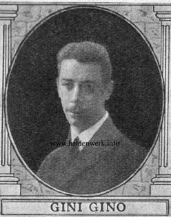 Gino Gini wurde am 31. August 1888 in Triest geboren. Da er in Wien zur Ausbildung weilte, absolvierte er sein Freiwilligen-Jahr zum Reserve-Offiziersanwärter beim k.k. Landwehr Infanterie Regiment „Wien“ Nr. 1 wo er mit Rang 35 vom 1. Mai 1912 vom Kadett-Aspirant zum Fähnrich der Reserve befördert wurde. Gleichzeitig erfolgte seine Überstellung zum k.k. Infanterie Regiment „Pola“ Nr. 5, da dieses natürlich näher seiner Heimatadresse lag. Sofort zu Kriegsbeginn wurde er zu den Fahnen gerufen, doch da in seinem Stammregiment keine Fähnrichsstelle mehr frei war, wurde er dem k.k. Infanterie Regiment „Laibach“ Nr. 27 zugeteilt. Mit diesem Landwehr-Regiment verlegte Fähnrich der Reserve Gino Gini an den östlichen Kriegsschauplatz. Beim Angriff am 26. August 1914 auf die Höhe Krasno, östlich von Przemyślany, drängte er todesverachtend mit großer Heftigkeit verschiedene russische Infanterieabteilungen zurück, gelangte mit seiner Halbkompanie nahe an die feindliche Artilleriestellung und wurde bei den Versuchen, in deren Flanke und Rücken zu gelangen, tödlich verwundet. Sein opferwilliger Heroismus wurde, durch die Allerhöchste Entschließung vom 23. Dezember 1914, mit der posthumen Zuerkennung der Goldenen Tapferkeitsmedaille gewürdigt. © Jörg C. Steiner, Wien |