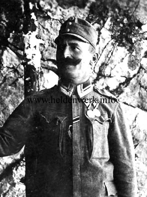 Candido Graiff wurde am 13. Juli 1877 in Südtirol geboren, war aber nach Thaur bei Innsbruck heimatzuständig. Er müsste so um 1897 seine Dienstpflicht abgeleistet haben, aber leider war es nicht möglich über sein „Vorleben“ etwas in Erfahrung zu bringen. Wir finden in erst im Frühjahr 1916 als Landsturm-Offiziersstellvertreter in der 2. Kompanie des 162. Landsturm-Bataillons. Er ist seit 24. November 1910 verheiratet. Die Ereignisse zwischen 12. und 22. Juni 1916, Landsturm-Offiziersstellvertreter Graiff war als Zugskommandant eingesetzt, die schließlich zur Verleihung der Goldenen Tapferkeitsmedaille geführt haben, schildert er wie folgt: „Es war am 12. Juni 1916 in den Dolomiten von Cortina d’Ampezzo auf Croda dell’Ancona. Um die Mittagsstunde nach einem mörderischen Artillerievorbereitungsfeuer waren die Italiener in unsere Stellung eingedrungen und hatten sie besetzt. Nun erhielt die halbe 2. Kompanie des Landsturm-Baons Nr.162 den Befehl die Crodastellung wieder zu nehmen und den Gegner hinauszuwerfen. Es gelang nach einem Angriff, den 100 Mann unternahmen, leider mit nicht wenigen Verlusten. Da aber die Stellung für den Feind sehr wertvoll war, konnte nicht angenommen werden, dass er nun Ruhe geben werde. Um weiteren Anstürmen standzuhalten, traf ich geeignete Maßnahmen. Am 13. Juni früh eröffnete die feindliche Artillerie wieder ein heftiges Feuer, das 2 Stunden lang ungeschwächt anhielt. Ich entwickelte meinen Zug und bestieg selbst eine ausgesetzte Felswand, von der aus ich auf das Angriffsgelände des Gegners einen guten Ausblick hatte. Oben angekommen sah ich, dass der Feind schon vor den Drahtverhauen lag und jeden Augenblick gegenwärtig war vorzugehen. Diese Überraschung hätte schwerste Folgen haben können! Es gelang mir durch eine kurze Meldung das Kommando zu verständigen, wo die Italiener liegen und welche Gefahr bevorsteht. In diesem Augenblick wurde schon das Artilleriefeuer vorverlegt und die Italiener stürmten an. Nun bekamen die von mir bedienten Zielferngewehre schwere, blutige Arbeit. Die ersten feindlichen Reihen wurden niedergeschossen. Fluchtartig traten die Überlebenden den Rückzug an. Nun setzte wieder Vergeltungsfeuer ein, aber die Italiener ließen nicht so schnell nach und wiederholten ihre Angriffe bis zum 22. Juni solange bis sie endlich geschlagen waren und von ihrem Vorhaben abließen. Unser Abschnittskommandant Oberstleutnant von Bart schrieb: ‚Das dies gelang war nur ein Verdienst des Offiziersstellvertreters Graiff und seiner tapferen Schar. Die Zahl der abgeschossenen Italiener durch Offiziersstellvertreter Graiff, mit Unterstützung durch Zugsführer Lackner, betrug mehr als 250.’ Anfang August 1916 wurde ich von Hauptmann Nowotny in unserer Stellung mit der Goldenen dekoriert.“ Bis zu Kriegsende wurde Landsturm-Offiziersstellvertreter Candido Graiff noch mit dem Karl-Truppen-Kreuz, der Silbernen Tapferkeitsmedaille 1. Klasse und der preußischen Kriegerverdienstmedaille ausgezeichnet. Nach dem Krieg wollte er nicht mehr in seine besetzte Heimat Südtirol zurückkehren und versuchte sein Glück als Gastwirt in Nordtirol. Dies misslang und er übersiedelte nach Linz, wo er von 1929 bis 1934 Vertreter einer Firma für Gemüse und Obst war. Nachdem diese Firma wegen der Wirtschaftskrise schließen musste, war er fast ein Jahr arbeitslos, bevor er sich mit einer Agentur und einem Kommissionsgeschäft für alle freihandelbaren Waren selbständig machte. Auch dieses Geschäft lief sehr schlecht und die Familie lebte in höchst bescheidenen Verhältnissen. Candido Graiff verstarb am 24. Dezember 1939 in Linz mit nur 62 Jahren. © Jörg C. Steiner, Wien |