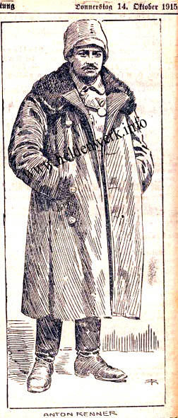 Anton Alois Renner wurde am 26. November 1888 in Unterwaltersdorf (NÖ) als ehelicher Sohn der Maria, geborene Buger und Franz Renner, Hausbesitzer ebendort, geboren. Seinen Wehrdienst beim kuk Infanterie Regiment „Hoch- und Deutschmeister“ Nr. 4 beendete er als Zugsführer und fand danach eine Anstellung in einer Wiener Seidenbandfabrik. Am 12. April 1914 heiratete er Fräulein Johanna Kollmann. Mit der 4. Kompanie des Wiener Hausregiments ging er zu Kriegsbeginn an die russische Front ab. Ende 1914 erwarb er sich, mittlerweile zum Reserve-Zugsführer titular Feldwebel befördert, die Silberne Tapferkeitsmedaille 1. Klasse, amtlich publiziert am 2. März 1915. Das Deutsche Volksblatt brachte in seiner Ausgabe vom 4. Februar 1915 sogar einen langen Feldpostbrief von ihm an seine junge Ehefrau mit besonders patriotischen Inhaltes, in der Art „trotz schwerster Kämpfe verliert ein Deutschmeister den Humor nicht“. Noch einmal sollte die Lokalpresse über Anton Renner berichten und zwar die Illustrierte Kronen-Zeitung am Donnerstag den 14. Oktober 1915. Unter dem Titel „Fünf ,Goldene‘ für die Edelknaben“ wurde unter anderem kurz über den Reserve-Feldwebel Renner berichtet und obige Zeichnung veröffentlicht: „Im letzten Verordnungsblatt wurden neuerdings fünf Deutschmeister mit der Goldenen Tapferkeitsmedaille ausgezeichnet, so daß sich der Besitzstand des Regiments an dieser höchsten, einem Soldaten des Mannschaftsstandes erreichbaren Auszeichnung auf zehn erhöhte. … Tragisch ist das Schicksal des Reservefeldwebel Anton Renner. Er war in seinem bürgerlichen Leben Privatbeamter in der Seidenbandfabrik, Schönbrunnerstraße 100. Drei Monate vor der Mobilisierung hatte er geheiratet. Er hatte sich so tapfer geschlagen, daß er, ehe er die Goldene erhielt bereits die Bronzene und Silberne Tapferkeitsmedaille erster Klasse besaß. Bei einem der letzten Kämpfe des Regiments fand er, von einem Artilleriegeschoß getroffen, den Heldentod. Aus den Feldpostkarten, die er an seine Angehörigen schrieb, spricht eine besondere Kampfesfreude.“ Tatsächlich fiel Feldwebel Anton Renner am 21. Juli 1915 und wurde für diese Waffentat posthum am 6. Oktober 1915 mit der Goldenen Tapferkeitsmedaille, amtlich publiziert am 12. Oktober 1915, ausgezeichnet. Ob seine Witwe die Medaille ausgefolgt bekommen hat, konnte nicht eruiert werden. © Jörg C. Steiner, Wien |