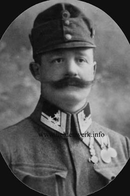 Ernst Skrabitz wurde am 10. Jänner 1881 in Piefling bei Köflach, Bezirk Voitsberg in der Steiermark geboren. Als Berufsunteroffizier bekleideter er im bosnisch-herzegowinischen Infanterie Regiment Nr. 2 zuerst die Stelle eines Kompanie-, später die eines Regimentshornisten. Am 14. August 1914 heiratet er in der Garnisonskirche zu Graz Frau Helene Hofer. Im Verlaufe des Krieges zeichnet sich Ernst Skrabitz immer wieder durch seine Besonnenheit, aber auch seine Entschlossenheit und seinen Mut aus. Selbst im heftigsten Infanterie- und MG-Feuer bläst er unbeirrt seine Signale. Die Silberne Tapferkeitsmedaille 1. und 2. Klasse, sowie das Silberne Verdienstkreuz mit der Krone am Band der Tapferkeitsmedaille legen Zeugnis dafür ab, doch seine große Stunde, seine hervorragendste Waffentat ist zugleich das Ende des Krieges. Am 4. November 1918 befindet sich das Regiment bei der Ortschaft Pontalto bei Agorto, trotz des Waffenstillstandes im heftigen Infanteriegefecht mit italienischen Truppen. Aufgrund der anbefohlenen Einstellung der Kampfhandlungen muss das Regimentskommando nun mit den italienischen Verantwortlichen Kontakt aufnehmen - aber wie? Schließlich meldet sich Stabsfeldwebel und Regimentshornist Skrabitz freiwillig. Ungeachtet der Gefahr schlägt er sich durch die feindlichen Linien durch, erreicht ein italienisches Kommando und kann dort als Parlamentär einen Offizier überzeugen das Feuer einzustellen und Kontakt zwischen den Kommanden herstellen. Durch sein mutiges Vorgehen verhindert er auf beiden Seiten unnötige Tote und Verletzte, geht jedoch wie so viele Angehörige der zusammenbrechenden österreich-ungarischen Armee in unverdiente Kriegsgefangenschaft. Nach über zehn Monaten kehrt Stabsfeldwebel Skrabitz am 12. September 1919 aus der italienischen Kriegsgefangenschaft heim. Seine letzte heroische Tat wurde durch seinen Regimentskommandanten jedoch mit der Eingabe zur Verleihung einer Goldenen Tapferkeitsmedaille gewürdigt. Am 19. November 1919 wird ihm diese hohe Auszeichnung vom Staatsamt für Heerwesen nachträglich zuerkennt. Er bekommt dafür, da nach dem Stichtag 1.11.1918 erfolgt, zwar niemals Tapferkeitsmedaillen-Zulage, jedoch trotzdem eine sichtbare Anerkennung für eine höchst ungewöhnliche Waffentat. Als hoch dekorierter Berufsunteroffizier wird er zuerst zum Grenzschutzbaon I, später zum Alpenjäger Regiment Nr. 9 eingeteilt. Schließlich jedoch mit 31. Dezember 1922 vorzeitig pensioniert. Da von einer Pension in Höhe von 175,- Schillingen ein Ehepaar nicht leben konnte, zog Ernst Skrabitz nach Graz, wo er am 16. Oktober 1923 die Stelle eines Skontisten, später als Portier, bei der Creditanstalt annahm. Überraschend verstirbt seine Frau Helena am 29. Oktober 1924. Bereits am 28. Juni 1925 heiratet der frisch Verwitwte in der Pfarre Heilig Blut in Graz Frau Luzive Simonič (geb. 13.12.1882). Bedingt durch die allgemein sehr schlechte Wirtschaftslage, wurde er jedoch am 31. Juli 1934 abgebaut und die Familie zog nach Oberpremstätten, eine Ortschaft bei Graz, die heute in die größere Gemeinde Unterpremstätten eingegliedert ist. Über den weiteren Lebensweg von Ernst Skrabitz konnte leider kaum etwas in Erfahrung gebracht werden. Nach dem Anschluss Österreichs an das Großdeutsche Reich, wurde er, wie die meisten anderen Träger der Goldenen Tapferkeitsmedaille auch, ehrenhalber zum Leutnant a.D. in der Landwehr der Deutschen Wehrmacht befördert. In seinem Falle geschah dies mit dem Erlass vom 30. Juli 1940. Im Meldebuch der Gemeinde Unterpremstätten wurde Ernst Skrabitz mit dem Datum 16. Jänner 1949 und dem Vermerk „verstorben“ abgemeldet, jedoch ohne der sonst üblichen Angabe von Ort und Datum des Todes; auch im kirchlichen Taufregister wurde nur „verstorben 16.1.1949 in Graz“ nachgetragen. © Jörg C. Steiner, Wien |