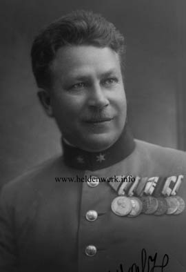 Karl Walz wurde am 19. August 1892 im Wiener Vorstadtbezirk Hernals geboren. Nach der Matura und seinem Freiwilligenjahr, das er als Fähnrich der Reserve beim k.k. Landwehr Infanterie Regiment Nr. 24, im Kriege dann umbenannt in k.k. Schützen Regiment Nr.24, beendete, absolvierte er 1912 seine Prüfung als Volksschullehrer. Danach wurde er mit Rang vom 11. Juli 1910 in den Stand eines städtischen Beamten in Wien eingestellt. Wie bei allen Landwehr bzw. Schützen Regimentern, deren Einzugsgebiet im Bereich der großen Städte lag, gab es im Mobilisierungsfall weit mehr Offiziersanwärter und Subalternoffiziere im Stand der Reserve, als im Regiment tatsächlich benötig wurden. Karl Walz wurde also gleich nach seiner Einrückung vom Stammtruppenkörper k.k. Schützen Regiment Nr. 24 dem Landsturm-Infanterie-Baon Nr. 169 zugeteilt, mit dem er Ende 1917 an die Südfront abging. Im Frühjahr und Sommer 1918 hatte diese Landsturm-Formation im Adamellogebiet auf dem Bergmassiv des Stabelin ihre Stellungen zu verteidigen. Fähnrich der Reserve Karl Walz, der schon zuvor mit der Silbernen Tapferkeitsmedaille 1. Klasse ausgezeichnet worden war, schildert, leider in sehr kurzen, kaum über den Text des Belohnungsantrag hinausgehenden Worten, wie er im August 1918 ebendort die Goldene Tapferkeitsmedaille erringen konnte: „Bei der italienischen Offensive am 13. August 1918 war ich Kommandant des Stützpunktes unserer Vorfeldstellung auf dem Stabelin, einer fast 3.000 Meter hohen Bergspitze im Adamellogebiet. Nach ausgiebigen Trommelfeuer stürmte der Feind in großer Übermacht den ganzen Tag gegen meine Stellung. Nachdem sie meinen Nachbarabschnitt erobert hatten und auch die Kompaniereserven sich in die Hauptstellung zurückgezogen hatten, war ich mit meinen Männern ganz von den Italienern eingeschlossen. Meine Stellung galt schon als verloren und wurde auch bereits schon von eigener Artillerie beschossen. Es gelang mir jedoch mit meinen braven Leuten alle Angriffe der Feinde abzuschlagen und diese auch noch aus dem Nachbarabschnitt wieder zu werfen. Dafür wurde mir in Pinzolo am 4. September 1918 durch den Kommandanten der 97. Inf.Brigade, Herrn GenMjr. Krammer, eine Goldene (Bronze vergoldet) Tapferkeitsmedaille mit dem Bildnis des Kaiser Karl verliehen.“ Karl Walz, der noch mit dem Karl-Truppen-Kreuz ausgezeichnet worden war und mit 1. November 1918 zum Leutnant der Reserve befördert wurde, kehrte nach Kriegsende wieder in seine Anstellung als städtischer Beamter zurück. Obwohl nie verwundet galt er aufgrund eines Nervenleidens als 20% behindert. Leider ist sonst wenig über ihn bekannt geworden. Nach den Unterlagen des Rings der Goldenen Tapferkeitsmedaille war er 1936 verheiratet mit einem Kind und wohnte immer noch in der Hernalser Hauptstraße. Bis zu seiner Pensionierung unterrichtete er in der Knabenhauptschule am Leipziger Platz im XX. Wiener Gemeindebezirk. Karl Walz verstarb am 4. Dezember 1964 und wurde am Hernalser Friedhof zur letzten Ruhe gebettet. © Jörg C. Steiner, Wien |
