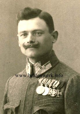 Peter Wegscheider wurde am 26. Juni 1885 in Lamersdorf bei Millstatt im Bezirk Spital an der Drau in Kärnten geboren. Seine Eltern, Vater Thomas, Besitzer der Schneiderkeusche und seine Mutter Maria, geborene Zlanabitnig, liesen ihn römisch-katholisch taufen. Er leistete seinen Wehrdienst beim Feldjäger-Bataillon Nr. 8 ab und arbeitete danach als Kutscher. Unmittelbar zu Kriegsbeginn wurde er als Reservist im Range eines Zugsführers zu seiner Stammeinheit eingezogen und in der 3. Kompanie verwendet. Gleich in den ersten Gefechten zeichnete er sich durch besondere Tapferkeit aus und wurde mit der Silbernen Tapferkeitsmedaille 1. Klasse, publiziert am 16.12.1914, und nach einer Beförderung zum titular Oberjäger mit der Goldenen Tapferkeitsmedaille, publiziert am 10.4.1915, ausgezeichnet. Aufgefordert durch die Schriftleitung des Vereins Ring der Goldenen Tapferkeitsmedaille, eine Schilderung seiner Waffentat einzuschicken, schrieb er am 28. August 1936, mit dem Hinweis darauf, das es schon sehr lange her wäre, recht knapp: „Habe die Goldene am 21.12.1914 bei Rückzugdeckung mit 12 Mann beim Durchbruch von Russen (erworben); hatte den Befehl Stellung zu halten bis Baon in Sicherheit war. War bis Mai 1915 bei jeder Kampfhandlung bei dem Baon dabei. Die Goldene wurde mir am 15.1.1915 in Kassa durch Herrn Obstlt. (Friedrich) Scotti. Die Medaille war echt mit dem Bild von Kaiser Franz Joseph I.; auf eienr Bahnreise 1919 gestohlen, auch meine große Silberne!“ Bis zum Kriegsende erreichte Peter Wegscheider noch den Rang eines Stabsoberjägers und wurde mit dem Karl-Truppen-Kreuz sowie den Dienstzeichen für Unteroffiziere ausgezeichnet. Am 1. April 1918 heiratete er in der Kirche St.Stephan in Gratkorn Fräulein Maria Anna Kolar, geboren am 22.7.1899. Nach dem Krieg lies sich die bald um 2 Kinder erweiterte Familie ebendort in der Steiermark nieder. Peter Wegscheider hatte Probleme in seinem erlernten Beruf einen Posten zu finden und nahm immer öfter einfach Hilfsarbeiterjobs an. 1936 schreibt er: „Mein Wochenverdienst ist 35 – 38 Schilling und ich habe die Medaillenzulage, 150 S bei der Gründung vom Ring der Goldenen bekommen und eine Maispende von Herrn Bundeskanzler 1935 von 50 S; lebe also in sehr bescheidenen Verhältnissen.“ Nach dem sogenannten Anschluss Österreichs ans Großdeutsche Reich wurde Peter Wegscheider, wie die meisten anderen Besitzer der Goldenen Tapferkeitsmedaille, ehrenhalber nach dem sogenannten Tanneberg-Erlass, zum Leutnant a.D. in der Deutschen Wehrmacht befördert. Eine Verwendung im 2. Weltkrieg erscheint unwahrscheinlich aufgrund seines Alters. Am 17. März 1950 verstirbt Peter Wegscheider in Gratkorn an einer Lungenentzündung. © Jörg C. Steiner, Wien |